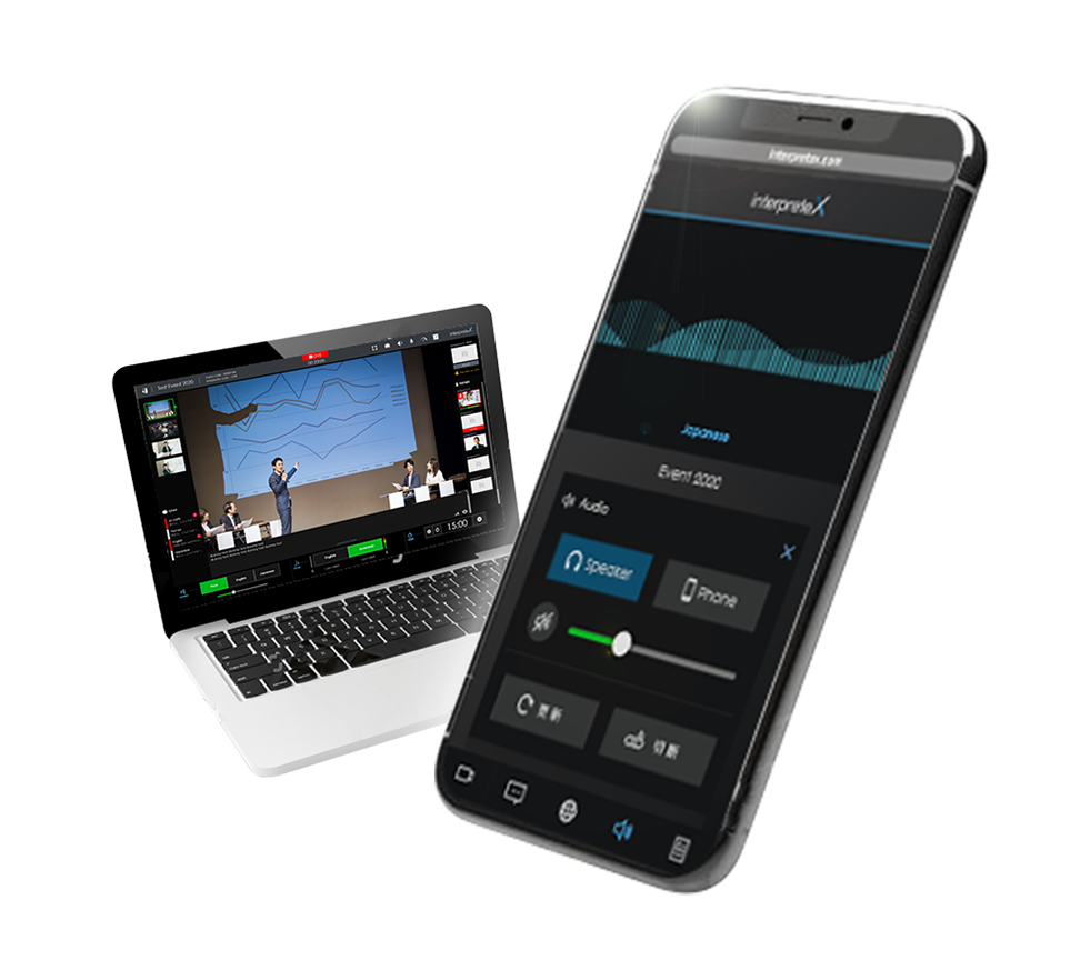 しかし、interpreteXではそんな悩みはいりません。BYOD(Bring Your Own Device)でオーディエンスは自分のスマートフォンで同時通訳が聞けるのです!